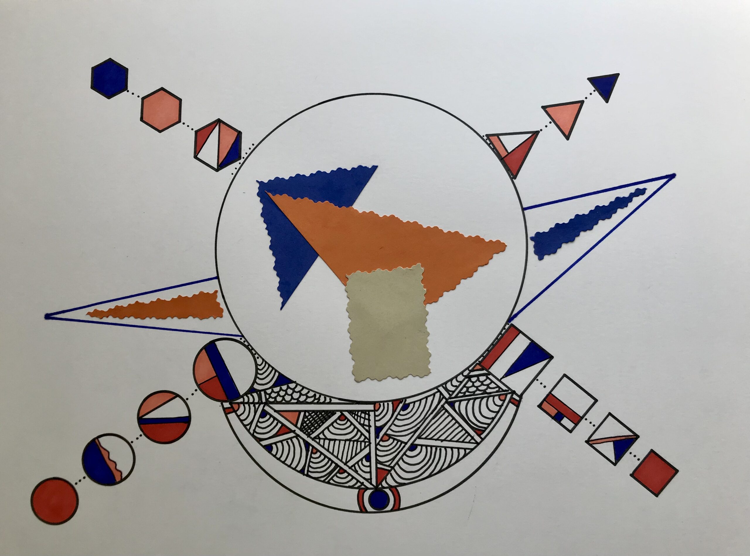 Caught in the Middle Again. Pen, ink, and paper.
