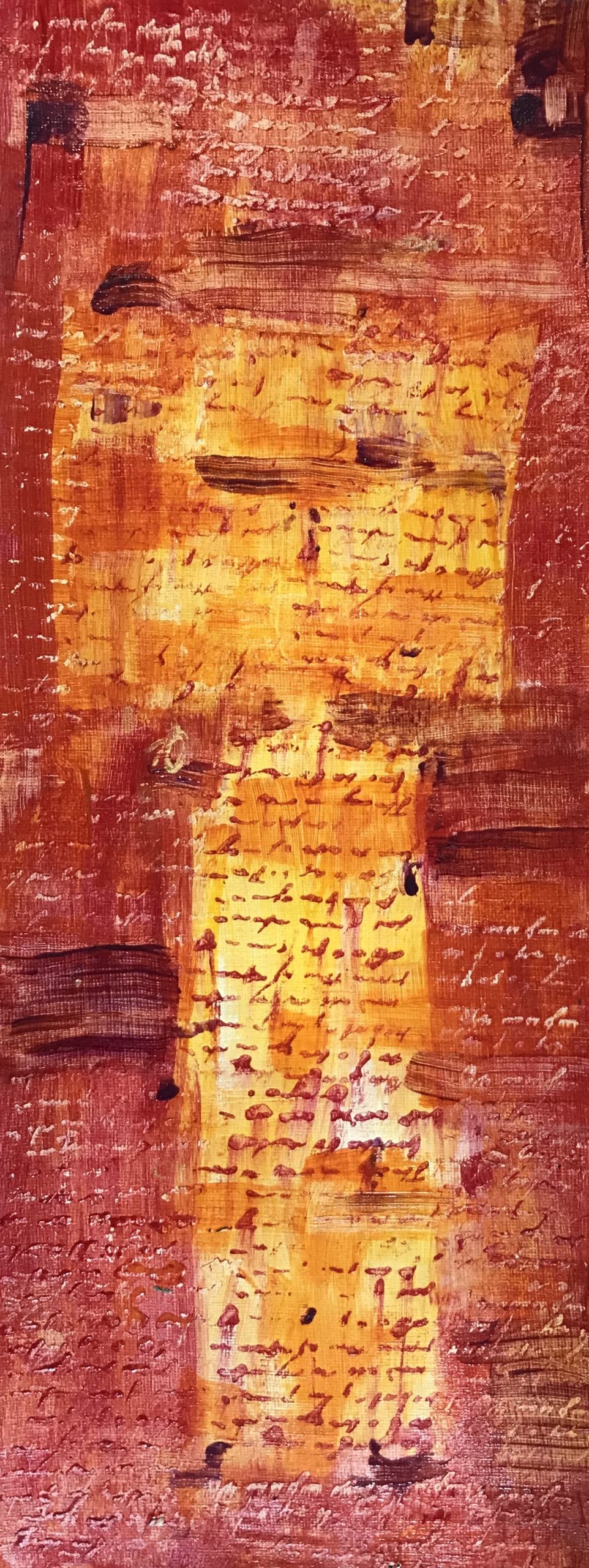 Resolutions. 19” x 7.5”. Acrylic on unstretched cnanvas.